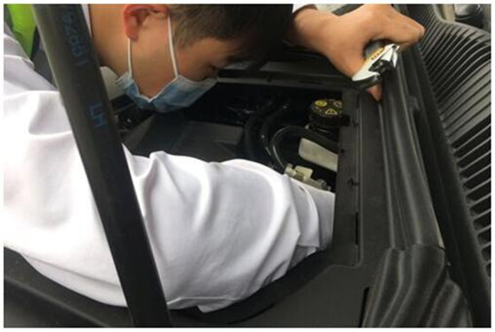 看到司機(jī)心急如焚的樣子,當(dāng)班人員一邊安慰著司機(jī),一邊迅速取來維修工具,并協(xié)助將車輛引導(dǎo)至收費廣場的安全區(qū)域,在周圍擺放好安全錐桶。經(jīng)檢查發(fā)現(xiàn)是車輪軸承出現(xiàn)問題。當(dāng)時正是正午時分,烈日當(dāng)頭,雖然已入深秋,但依舊烈日炎炎,交投收費人員的衣襟已經(jīng)全部被汗水打濕,經(jīng)過半個小時的故障排查,終于將故障修復(fù)。