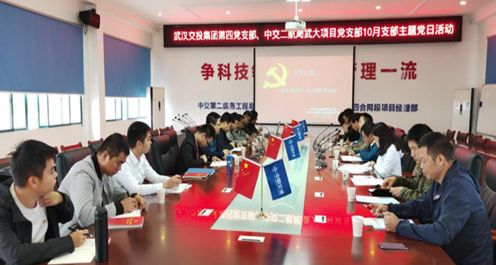 為提高黨員干部的科學(xué)管理水平,促進(jìn)黨員干部勇于擔(dān)當(dāng)、積極作為、拼搏趕超、不斷提升自身的管理水平和綜合素質(zhì),10月16日上午武漢交投集團(tuán)第四黨支部聯(lián)合中交二航局武大高速公路4標(biāo)段黨支部,在項(xiàng)目部會(huì)議室開展了以“創(chuàng)建黨員‘責(zé)任區(qū)’、助力武漢‘軍運(yùn)會(huì)’”為主題的黨日活動(dòng)。雙方黨員、發(fā)展對(duì)象及群眾代表積極參加黨日活動(dòng)。