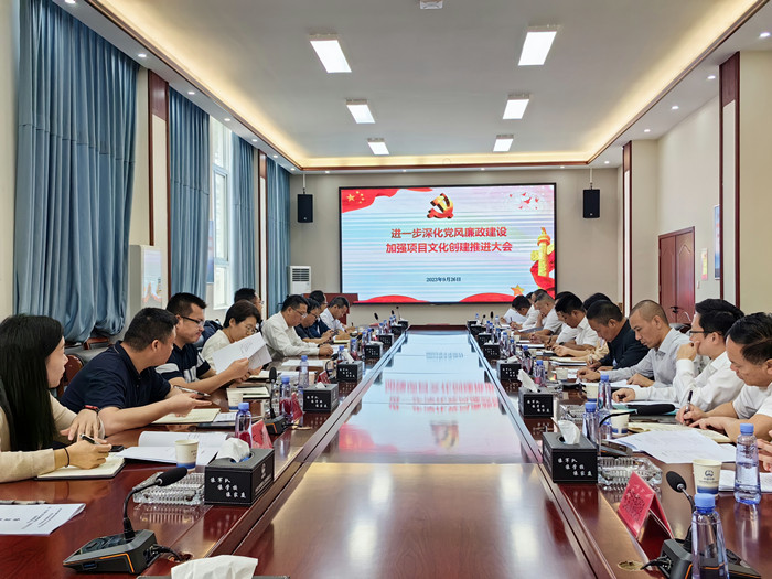 會議強調(diào),要進一步深化黨風廉政建設,加強項目文化創(chuàng)建:一是在項目文化建設中促進清廉示范與工程建設雙融合;二是在項目建設管理中發(fā)展黨建與項目文化雙驅(qū)動;三是在深化黨建工作中推動項目文化與品牌雙升級。各參建單位領導班子要帶頭弘揚清廉好作風,充分發(fā)揮干事主動性,切實推進項目文化深入和品牌創(chuàng)建,為項目建設增光添彩。