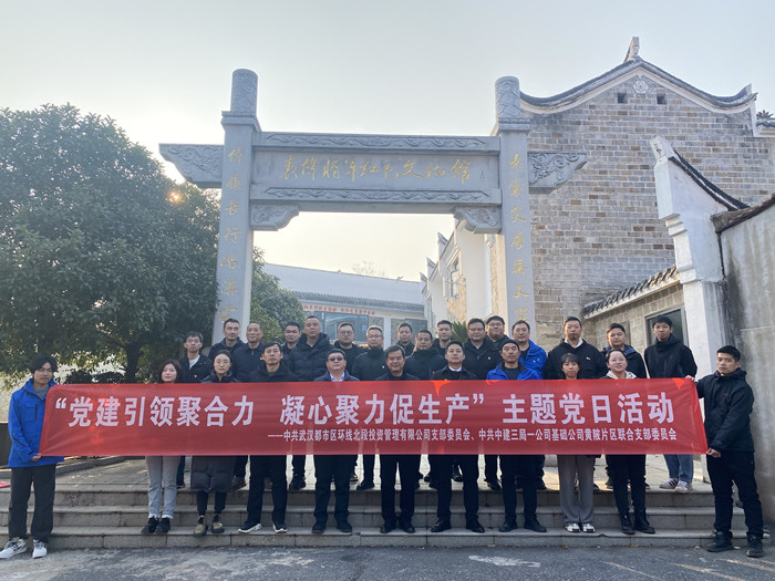 為積極探索業(yè)主管理單位與施工單位黨組織互促互助機制,深入推進黨建生產(chǎn)高度融合,切實推動現(xiàn)場施工生產(chǎn)建設(shè),安全、高效完成項目建設(shè)目標,2023年12月27日,武漢都市區(qū)環(huán)線北段投資管理有限公司黨支部與中建三局一公司基礎(chǔ)公司黃陂片區(qū)聯(lián)合黨支部以“黨建引領(lǐng)聚合力 凝心聚力促發(fā)展”為主題開展聯(lián)合黨日活動。武漢交投集團總經(jīng)理王愛民、北六環(huán)公司黨支部副書記胡楊,項目公司及中建三局3標段二分部全體黨員干部參與活動。