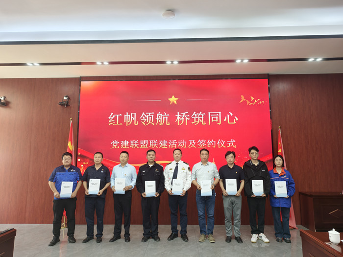為充分發(fā)揮黨建引領(lǐng)作用,匯聚各方合力,全周期保障漢南長江大橋建設(shè)期間長江干線水上交通安全和防污染,2025年4月23日,漢南橋公司黨支部攜手武漢金口海事處黨支部與長航公安、經(jīng)開水務(wù)、牌洲航道處、嘉魚縣交通局、經(jīng)開交通中心、中鐵大橋局、中交路建等九家涉水管理部門及項(xiàng)目建設(shè)方黨支部開展“紅帆領(lǐng)航、橋筑同心”黨建聯(lián)盟聯(lián)建活動(dòng)。武漢海事局政委、黨委副書記、紀(jì)委書記石欽與九家黨支部書記參加活動(dòng)。
