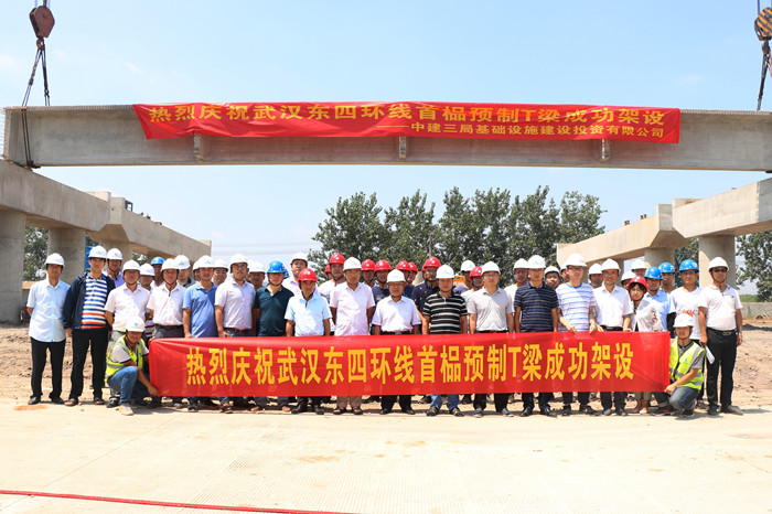 武漢東四環(huán)線起于武漢繞城高速北湖互通,終點(diǎn)與青山長(zhǎng)江公路大橋銜接,全長(zhǎng)8.182公里,雙向8車道,設(shè)計(jì)車速100公里/小時(shí),共建3座互通立交橋及2座特大橋,預(yù)計(jì)2019年底主線工程基本建成,此次首榀T梁的成功架設(shè)為東四環(huán)線早日通車、四環(huán)線早日畫圓打下了堅(jiān)實(shí)基礎(chǔ)。