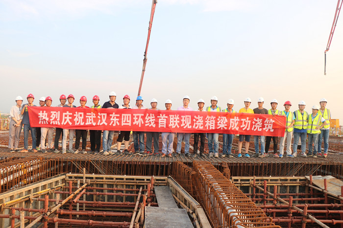 武漢東四環(huán)線項(xiàng)目首聯(lián)現(xiàn)澆箱梁混凝土澆筑在“百日大會(huì)戰(zhàn)”期間順利完成,履行了“百日大會(huì)戰(zhàn)”勞動(dòng)競(jìng)賽進(jìn)度節(jié)點(diǎn)計(jì)劃的承諾,為東四環(huán)項(xiàng)目的大干快上打下一針強(qiáng)心劑。