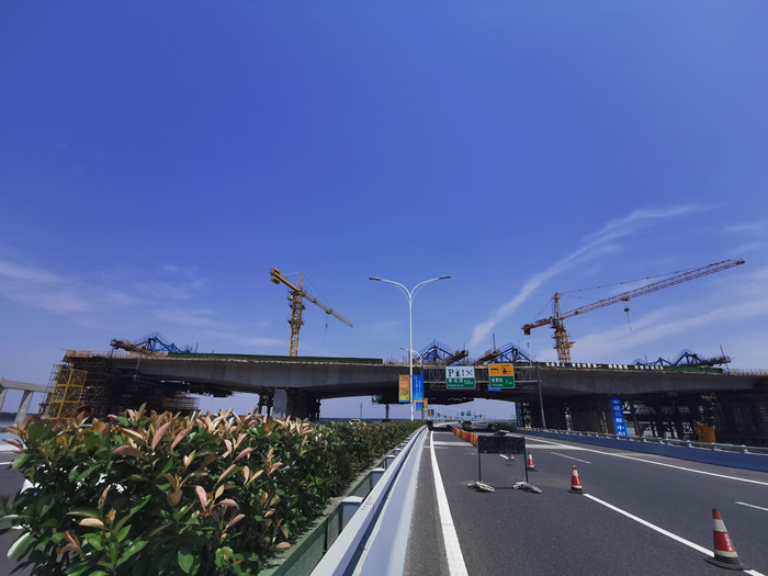 作為武漢市的門戶道路,機(jī)場(chǎng)二通道是武漢機(jī)場(chǎng)通往市區(qū)主要出行通道,車流量大、社會(huì)關(guān)注度高、安保任務(wù)重,施工期間歷經(jīng)十余次國(guó)家、省、市等各級(jí)領(lǐng)導(dǎo)出行安保任務(wù)。為確保機(jī)場(chǎng)二通道車流通暢和道路上方施工安全,北四環(huán)公司主動(dòng)作為,在各級(jí)部門的支持下,堅(jiān)決推行“四個(gè)高度”安全管理理念,即安全措施高度保障、安全氛圍高度營(yíng)造、安全費(fèi)用高度投入、安全管理高度有效,有力踐行了“不讓一粒石子落入機(jī)場(chǎng)二通道內(nèi)”的承諾。與此同時(shí),通過科學(xué)組織、統(tǒng)籌安排,北四環(huán)公司在施工過程中進(jìn)一步優(yōu)化混凝土配合比及施工方案,嚴(yán)控施工過程,對(duì)每道工序進(jìn)行嚴(yán)格把關(guān),最終實(shí)現(xiàn)了懸澆梁精準(zhǔn)合龍,成橋線形平順、箱體內(nèi)實(shí)外美的質(zhì)量目標(biāo)。