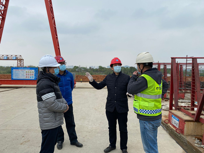 3月31日下午,武漢市紀(jì)委駐市交通運輸局紀(jì)檢組組長楊嶠,市交通局總工程師王益光,建設(shè)管理處副處長王濤一行赴交投集團(tuán)北四環(huán)線項目現(xiàn)場檢查指導(dǎo)疫情防控和復(fù)工復(fù)產(chǎn)相關(guān)工作,市交投集團(tuán)總經(jīng)理陳順平,總工程師王愛民陪同檢查。