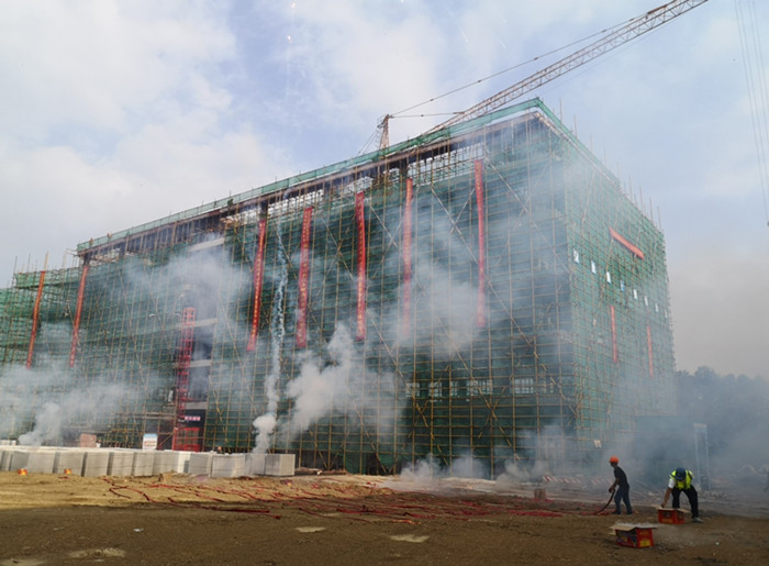 青山橋監(jiān)控養(yǎng)護中心是青山橋安全運營的中樞,擔(dān)負著橋梁健康監(jiān)測、反恐監(jiān)控、運營交通安全和橋梁養(yǎng)護管理等職能。中心總建筑面積為6016.16 平方,為五層鋼筋混凝土框架結(jié)構(gòu)。自復(fù)工以來,青山橋公司積極響應(yīng)“堅持兩手抓兩手硬,堅決奪取疫情防控和經(jīng)濟社會發(fā)展雙勝利”的號召,按照集團“目標(biāo)不變,任務(wù)不減,確保完成2020年度計劃”的要求,克服了用工、材料采購和持續(xù)降雨等困難,強力推進剩余工程。房建工程自4月1日正式展開后,各參建單位和人員抓進度,保安全,控質(zhì)量,歷時90天,結(jié)構(gòu)順利封頂,把因疫情影響的工期搶了回來,為青山橋項目按期運營打下了堅實的基礎(chǔ)。