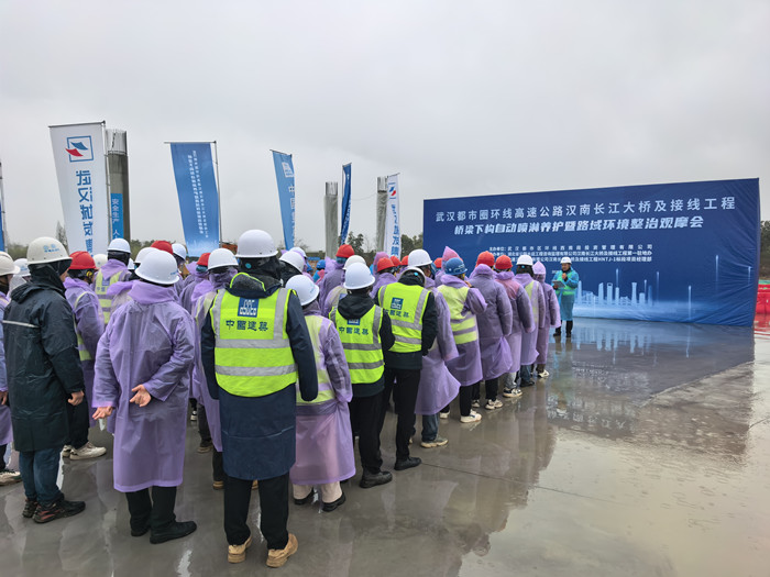 3月28日上午,為提升橋梁下構(gòu)養(yǎng)護(hù)水平,加強(qiáng)路域環(huán)境整治工作,落實武漢都市圈環(huán)線高速公路漢南長江大橋及接線工程路域環(huán)境整治相關(guān)要求,漢南橋公司組織各參建單位到中建三局承建的土建一標(biāo)開展橋梁下構(gòu)自動噴淋養(yǎng)護(hù)及路域環(huán)境整治現(xiàn)場觀摩交流和集中學(xué)習(xí)活動。項目公司、設(shè)計單位、駐地辦、中心試驗室、施工單位代表共計80余人參加本次活動,共同探討和交流橋梁下構(gòu)混凝土養(yǎng)護(hù)與路域環(huán)境整治的先進(jìn)經(jīng)驗和技術(shù)。