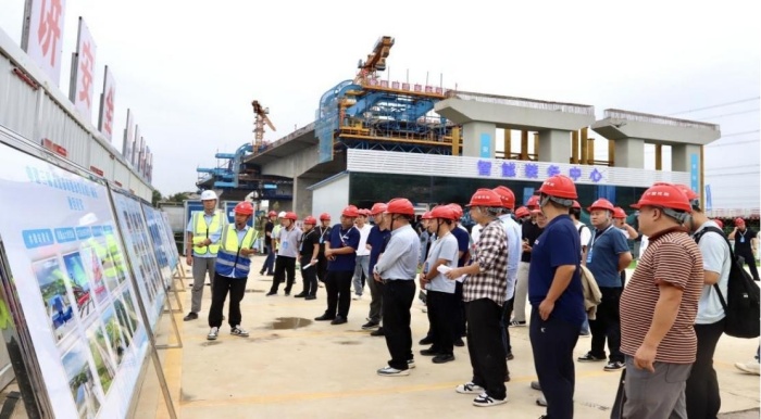 為積極推動智能建造技術(shù)在交通基礎(chǔ)設(shè)施領(lǐng)域的深度融合與應(yīng)用,引領(lǐng)橋梁工程建設(shè)向數(shù)字化、智能化轉(zhuǎn)型升級,近日,“2025橋梁智能建造技術(shù)交流暨武漢北六環(huán)項目現(xiàn)場觀摩會”在武漢成功舉辦。來自行業(yè)學(xué)會、主管部門、高?蒲性核、施工及監(jiān)理單位的150余名專家學(xué)者齊聚一堂,圍繞智能建造技術(shù)的前沿進展展開深入交流,并實地觀摩了由中建三局投資建設(shè)的武漢都市圈環(huán)線北段灄水河特大橋與預(yù)制梁智能工廠施工現(xiàn)場,重點探討了自平衡懸臂筑橋機、預(yù)制梁鋼筋骨架智能生產(chǎn)線等創(chuàng)新技術(shù)的實踐成果。