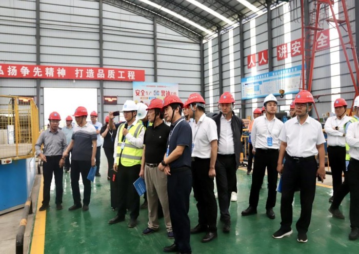 觀摩現(xiàn)場通過自平衡懸臂筑橋機工藝實景演示、BIM+GIS數(shù)字化管理平臺操作、智能張拉與壓漿技術(shù)展示、橋梁線形自動監(jiān)測系統(tǒng)講解、實體質(zhì)量樣板觀摩等環(huán)節(jié),全方位呈現(xiàn)了項目在橋梁智能建造領(lǐng)域的領(lǐng)先水平和精細化管理能力。自平衡懸臂筑橋機的成功應(yīng)用,有效提升了懸臂澆筑施工的穩(wěn)定性與效率,降低了安全風(fēng)險,為復(fù)雜環(huán)境下大跨徑橋梁施工提供了新的技術(shù)路徑和寶貴經(jīng)驗。此外,與會者還參觀了預(yù)制梁智能工廠,智能工廠自主研發(fā)應(yīng)用鋼筋骨架智能焊接工作站、三合一箍筋焊接工作站等智能工裝,打通預(yù)制梁全工序自動化生產(chǎn)最后一環(huán),研發(fā)應(yīng)用數(shù)據(jù)驅(qū)動的一體化管理平臺,實現(xiàn)數(shù)據(jù)驅(qū)動經(jīng)營管理、模型驅(qū)動生產(chǎn)制造,打造預(yù)制梁智能生產(chǎn)“一模到底”新模式。