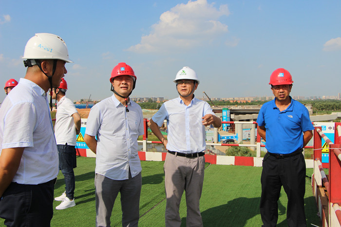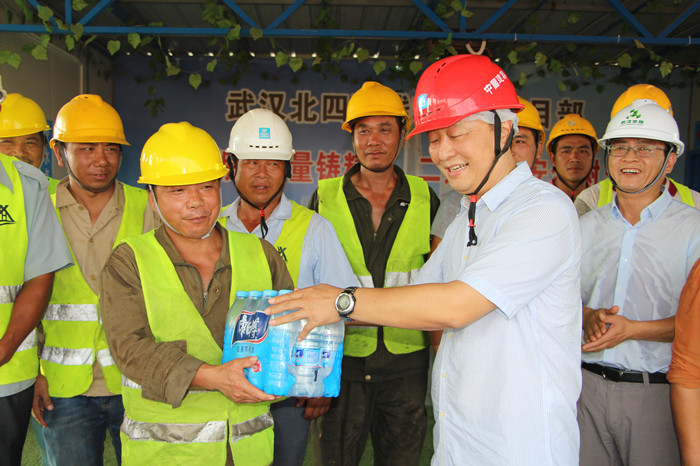 慰問現(xiàn)場,阮云旻詳細(xì)聽取了武漢交投北四環(huán)線項(xiàng)目建設(shè)相關(guān)情況介紹,對項(xiàng)目在建設(shè)中堅(jiān)持環(huán)保優(yōu)先的做法給予了充分的肯定。他強(qiáng)調(diào)指出,一是要不折不扣地將生態(tài)環(huán)保理念融入到工程建設(shè)的每一個(gè)具體細(xì)節(jié)中,最大限度減少工程建設(shè)對生態(tài)環(huán)保的影響,努力實(shí)現(xiàn)工程建設(shè)與生態(tài)環(huán)保的共贏。二是要緊盯工程質(zhì)量目標(biāo)、通車時(shí)間等節(jié)點(diǎn)不動(dòng)搖,大力推進(jìn)品質(zhì)工程建設(shè),努力為其他項(xiàng)目建設(shè)積累可供學(xué)習(xí)借鑒的先進(jìn)經(jīng)驗(yàn)。三是要堅(jiān)持安全、廉政不放松,安全工作和廉政建設(shè)至關(guān)重要,突出黨建引領(lǐng),推動(dòng)工程建設(shè)。四是要協(xié)調(diào)好本項(xiàng)目與其它道路橋梁的相交等問題,減少矛盾糾紛,為工程建設(shè)創(chuàng)造良好的社會(huì)環(huán)境。五是要想方設(shè)法做好高溫時(shí)期的防暑降溫工作,避開高溫錯(cuò)時(shí)施工,讓建設(shè)者時(shí)刻感受到組織的關(guān)愛,并將組織的關(guān)愛轉(zhuǎn)化為做好品質(zhì)工程的具體行動(dòng),為北四環(huán)早日建成通車、為人們便捷出行奠定堅(jiān)實(shí)的基礎(chǔ)。
