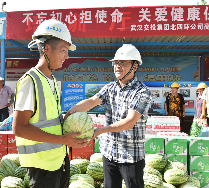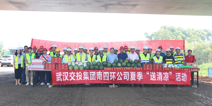 炎炎夏日,驕陽似火,高溫下的施工現(xiàn)場更是一派熱火朝天、奮臂揮汗的繁忙景象。入伏以來,武漢交投集團全體黨員干部職工始終堅守在各重點工程建設(shè)一線,無懼烈日暴曬,無畏酷暑炙烤,用辛勤的汗水譜寫“守初心、擔使命”的時代贊歌。近期,集團領(lǐng)導班子成員兵分多路,深入工程建設(shè)一線,開展高溫“送清涼”慰問活動,表達對奮斗者的關(guān)心和支持,切實維護廣大職工身體健康安全,確保順利完成各項生產(chǎn)經(jīng)營任務(wù):