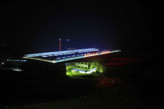 當(dāng)天00時50分,隨著一聲令下,總長142米、寬42.9米、重3.3萬噸的梁體,在2臺600噸千斤頂及牽引索的拉動下,逆時針旋轉(zhuǎn)87.47度至設(shè)計位置,成功跨越武漢北下行環(huán)發(fā)線、京廣貨線下行2條鐵路線,于2時40分轉(zhuǎn)體精確就位。