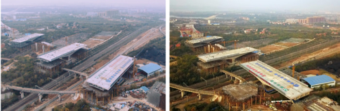 北四環(huán)線轉(zhuǎn)體橋梁施工前后