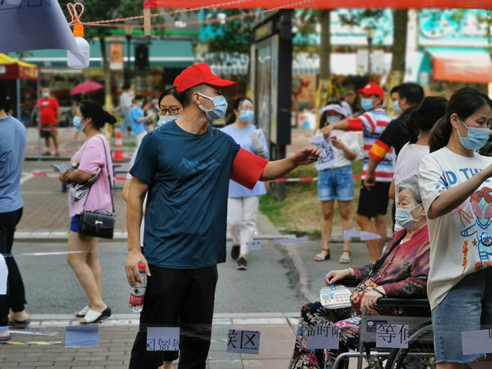 疫情就是命令,防控就是責(zé)任,核酸檢測現(xiàn)場就是疫情防控“戰(zhàn)場”。武漢交投集團(tuán)下沉工作隊由集團(tuán)基層黨支部書記、支委“頭雁領(lǐng)航”,黨員干部分成兩支工作隊分赴對口社區(qū),在社區(qū)黨委的統(tǒng)一安排下,主要負(fù)責(zé)核酸檢測期間的門崗值守值班、維護(hù)現(xiàn)場秩序、信息采集登記,物資搬運等工作。從驕陽似火的早8點到悶熱難耐的晚10點,市交投集團(tuán)下沉工作隊的隊員們衣服濕透了顧不上休息,聲音沙啞了顧不上喝水,一遍遍嚴(yán)謹(jǐn)認(rèn)真地重復(fù)著工作流程,不留余力揮灑汗水,爭分奪秒助力全員核酸檢測工作,確保了核酸檢測工作現(xiàn)場的安全順暢、秩序井然。