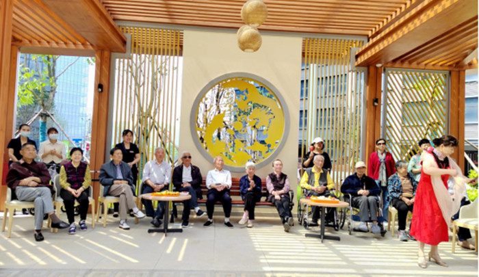 上午10點(diǎn),康養(yǎng)園區(qū)小廣場(chǎng)上笑聲不斷,吹拉彈唱設(shè)備架起來(lái),演員們換上舞蹈服,主持人開(kāi)始報(bào)幕,入住老人被護(hù)理人員有秩序地?cái)v扶下樓,一邊觀看節(jié)目,一邊曬著太陽(yáng),享受著園區(qū)內(nèi)獨(dú)有的春色。