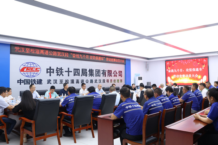 七月驕陽紅似火,大地草木正蔥蘢。7月9日,為號(hào)召全體參建者凝心聚力、攻堅(jiān)克難、團(tuán)結(jié)協(xié)作,全力以赴完成各項(xiàng)施工任務(wù),由武漢交投集團(tuán)主辦、武松高速項(xiàng)目部承辦的“奮戰(zhàn)九個(gè)月,攻堅(jiān)保通車”勞動(dòng)競賽活動(dòng)正式啟動(dòng)。武漢交投集團(tuán)副總經(jīng)理陳青標(biāo)、中鐵十四局二公司總經(jīng)理孔德芒出席會(huì)議。