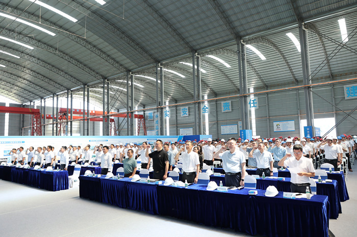 省交通運輸廳黨組成員、副廳長陳光斌出席并講話,武漢城發(fā)集團副總工程師、交投集團總工程師肖銘釗作動員講話,與會人員進行了集體安全宣誓,觀看了交通運輸安全生產(chǎn)警示片,參觀了智慧梁廠生產(chǎn)線。