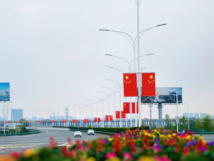肩負(fù)“楚天第一門(mén)”城市重要窗口使命的機(jī)場(chǎng)二通道,眼下正以嶄新的節(jié)日“盛裝”亮相——190面五星紅旗沿道路兩側(cè)次第舒展,如絢爛紅綢蜿蜒繞路,似燎原火焰熾燃征途,將醇厚的喜慶氛圍鋪滿每一公里旅程;沿線邊坡開(kāi)展“地毯式”雜草清理與精細(xì)化草坪養(yǎng)護(hù),千畝綠意如翡翠織毯向天際延展;筆柏列陣挺拔如儀仗,宛若忠誠(chéng)的綠色衛(wèi)士守護(hù)坦途;新優(yōu)月季品種如約綻蕊,瓣瓣含香點(diǎn)綴其間。這抹清新的“生態(tài)綠”與耀眼的“中國(guó)紅”交相輝映,勾勒出一幅靈動(dòng)鮮活的路域風(fēng)景畫(huà),成為途經(jīng)旅客眼中的“移動(dòng)風(fēng)景線”。