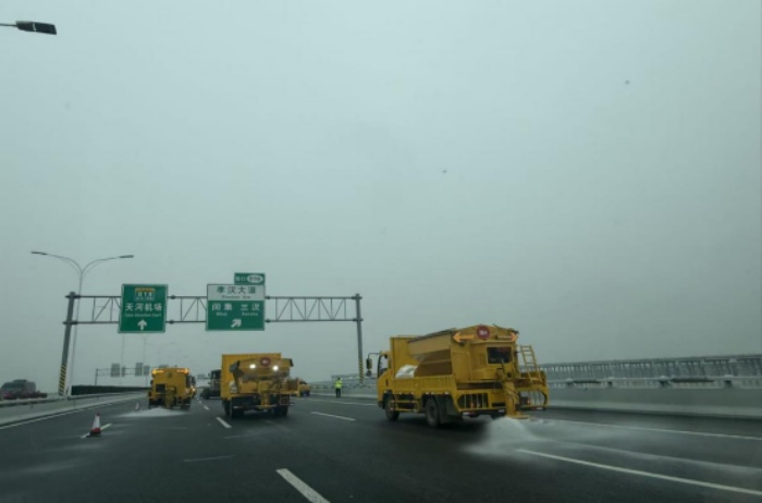 運營公司在所轄武大高速等重點路段沿線設置4處物資儲備點,儲備融雪劑3716噸、防滑墊6000條,配備除雪設備83臺,在橋梁、匝道等重點路段實行“人員、機械、物資”三靠前,確保“小雪即下即除,大雪24小時主車道暢通”;機場高速公司全面加強除雪裝備及應急物資保障,開展融雪防凍培訓和應急演練,強化“一路多方”低溫天氣協(xié)調處置能力,全方位保障惡劣天氣下道路安全暢通;青山長江公路大橋公司組織召開冬防工作會,同步開展除雪保暢應急演練,聚焦青山長江大橋主橋斜拉橋北938米易結冰路段,建立“預警-響應-處置”閉環(huán)機制,夜間重點時段每2小時巡查一次,精準化解結冰和斜拉索掉冰風險。