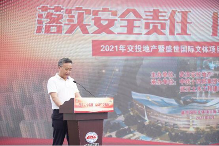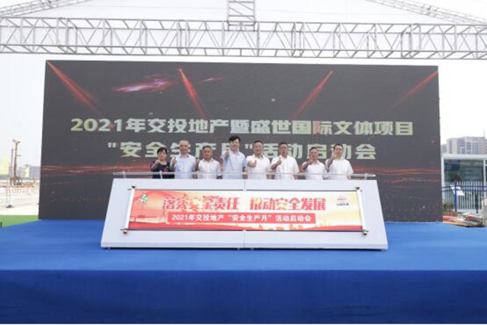 今年6月是全國第20個“安全生產(chǎn)月”,為深入貫徹落實省、市和武漢交投集團關于安全生產(chǎn)工作的相關要求,全面落實企業(yè)安全生產(chǎn)主體責任,營造“人人講安全、人人要安全、人人會安全”的濃厚氛圍,6月2日上午,武漢交投集團和縱盛地產(chǎn)公司在盛世國際文體項目施工現(xiàn)場舉辦了2021年“安全生產(chǎn)月”活動啟動會。黃陂區(qū)橫店街道人大主任羅學峰、交投集團副總經(jīng)理文兵、交投集團安全部部長汪幫平、交投集團和縱盛地產(chǎn)公司總經(jīng)理尹水章等領導蒞臨指導,地產(chǎn)公司各部門負責人、各項目辦負責人、各項目施工、監(jiān)理單位代表參加了啟動會。